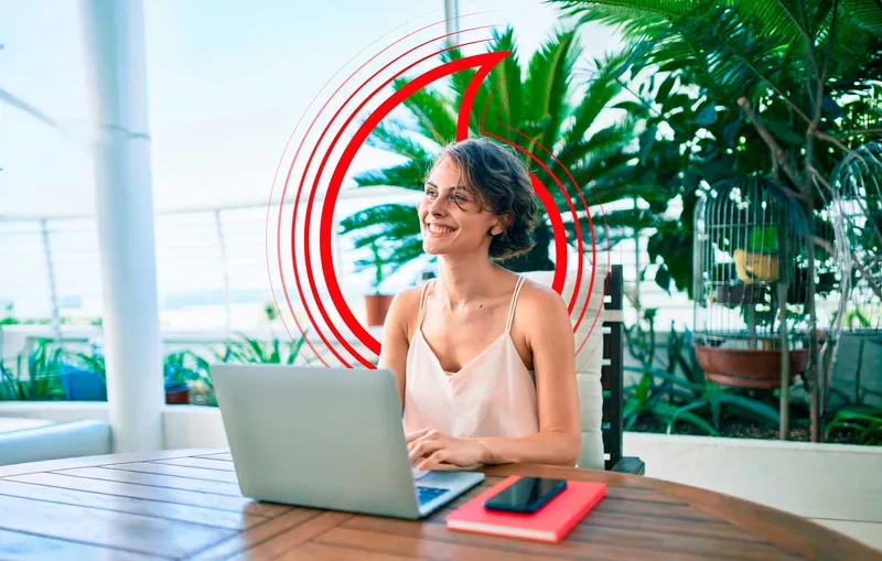 Si la fibra óptica no está disponible en tu dirección, ofrecemos el Internet portátil 5G desde 20 €/mes. Funciona con la red móvil 5G/4G, sin instalación ni cables. Es especialmente útil en zonas rurales, segundas residencias o cualquier lugar donde la fibra tradicional no tenga cobertura.